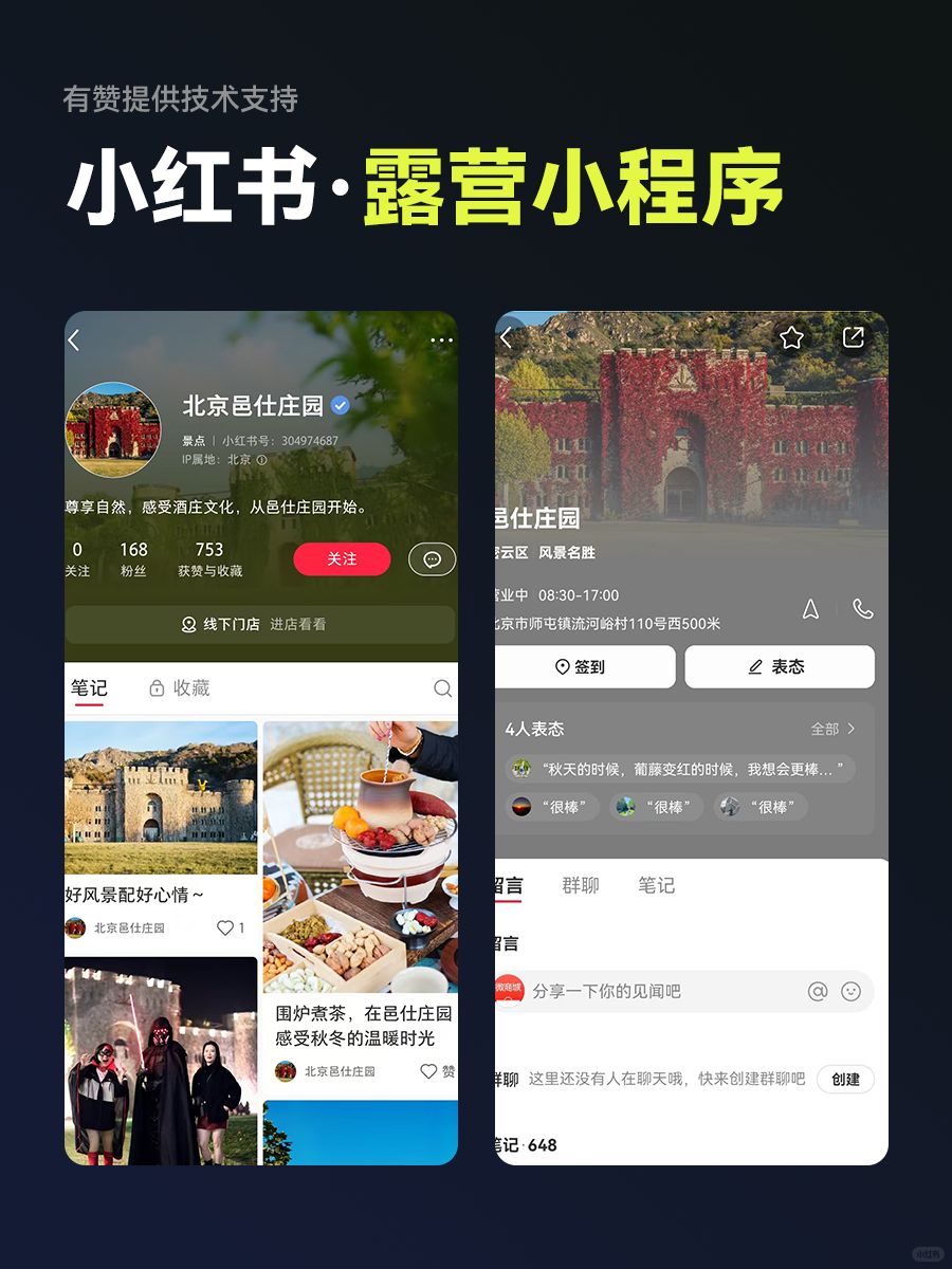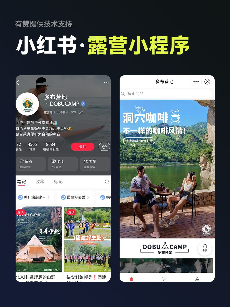 🌴 在小红书发布露营地的美图和客户体验,并标注你的位置,周围的人一看就能找到你。而且通过小程序,你可以直接展示露营套餐和优[开箱R],用户看到后就能一键下[购物车R],轻松锁客!