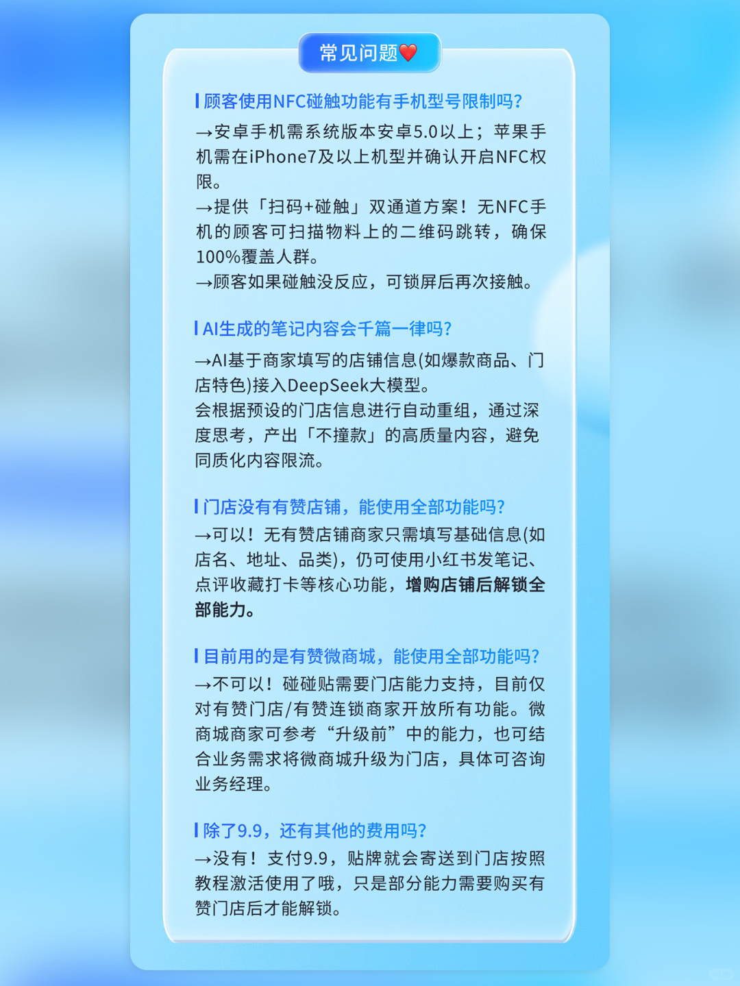 🎯1. 碰一下 ➡ 自动关注+点评+打卡,全流程无感完成! 顾客手机碰到柜台贴纸,自动跳出门店主页!直接收藏、点评、打卡一气呵成🎯