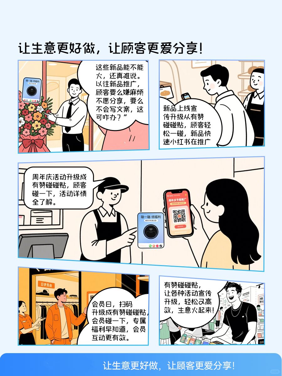 还在头疼新品没人知道?在陈列区放上「碰碰贴」,轻轻一碰→秒看产品亮点+使用教程!