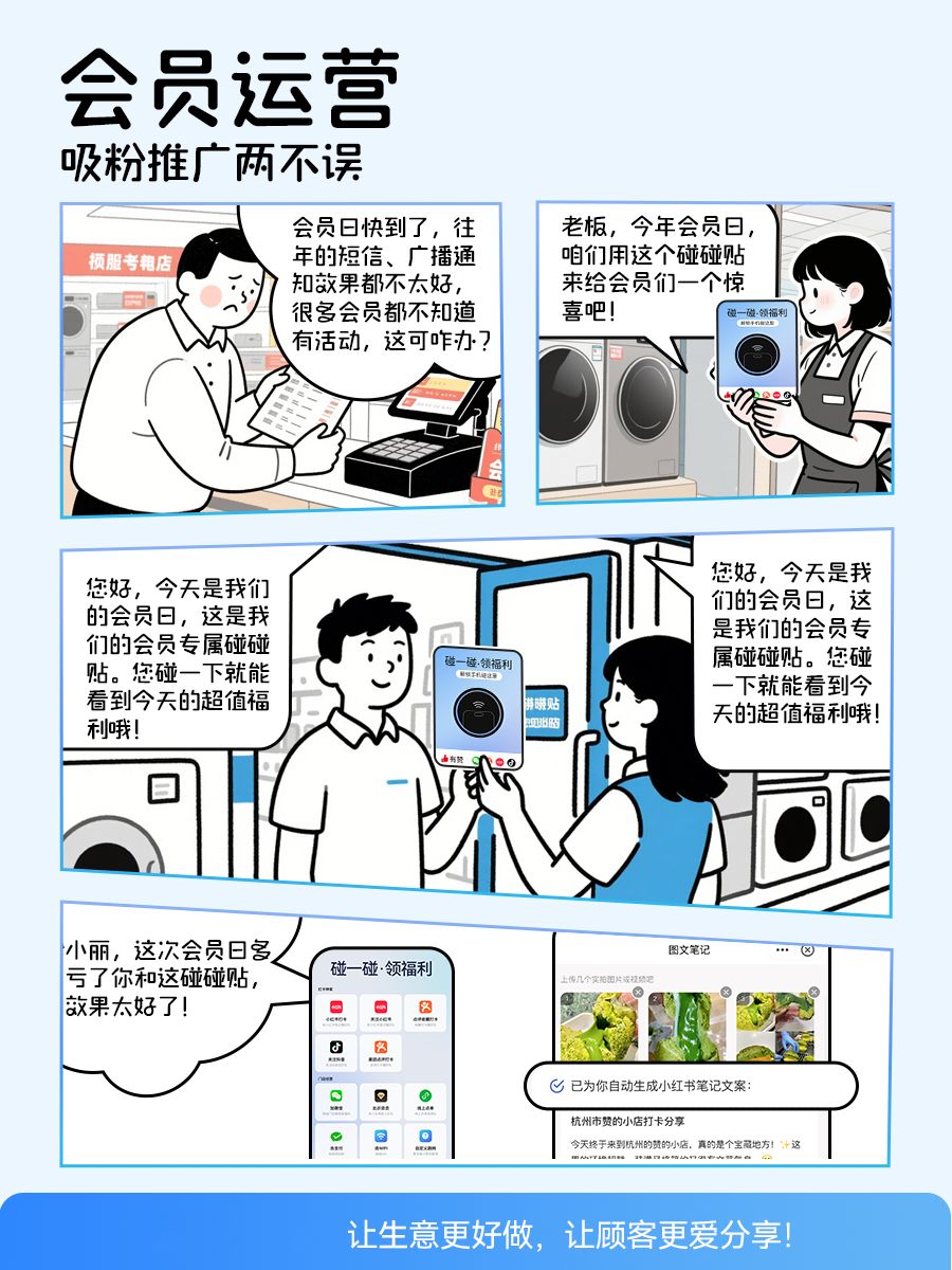 入口处贴「碰碰贴」,会员到店碰一下→专属福利弹窗提醒!