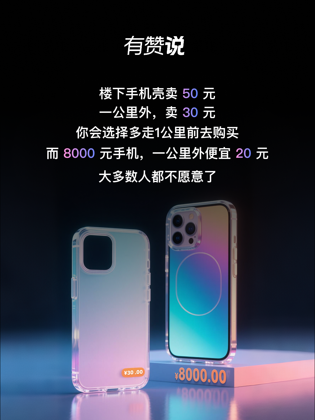 你有没有发现,同样是省20块钱,顾客的反应却完全不同?比如一个手机壳,楼下卖50块,一公里外卖30块,顾客多半会多走一公里。可如果换成8000块的手机,远一点的店只便宜20块,很多人却懒得挪步。这不是顾客不在乎钱,而是因为他们在意的是比例,不是金额本身。