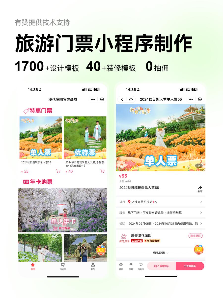 旅游景点使用小程序售票,为游客提供便捷丰富的购票体验,增加游客满意度