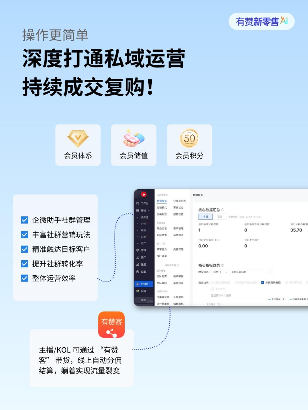 通过各种营销活动把客户吸引到我的微信小店里,然后通过会员体系、积分商城这些功能,把他们牢牢地留下来