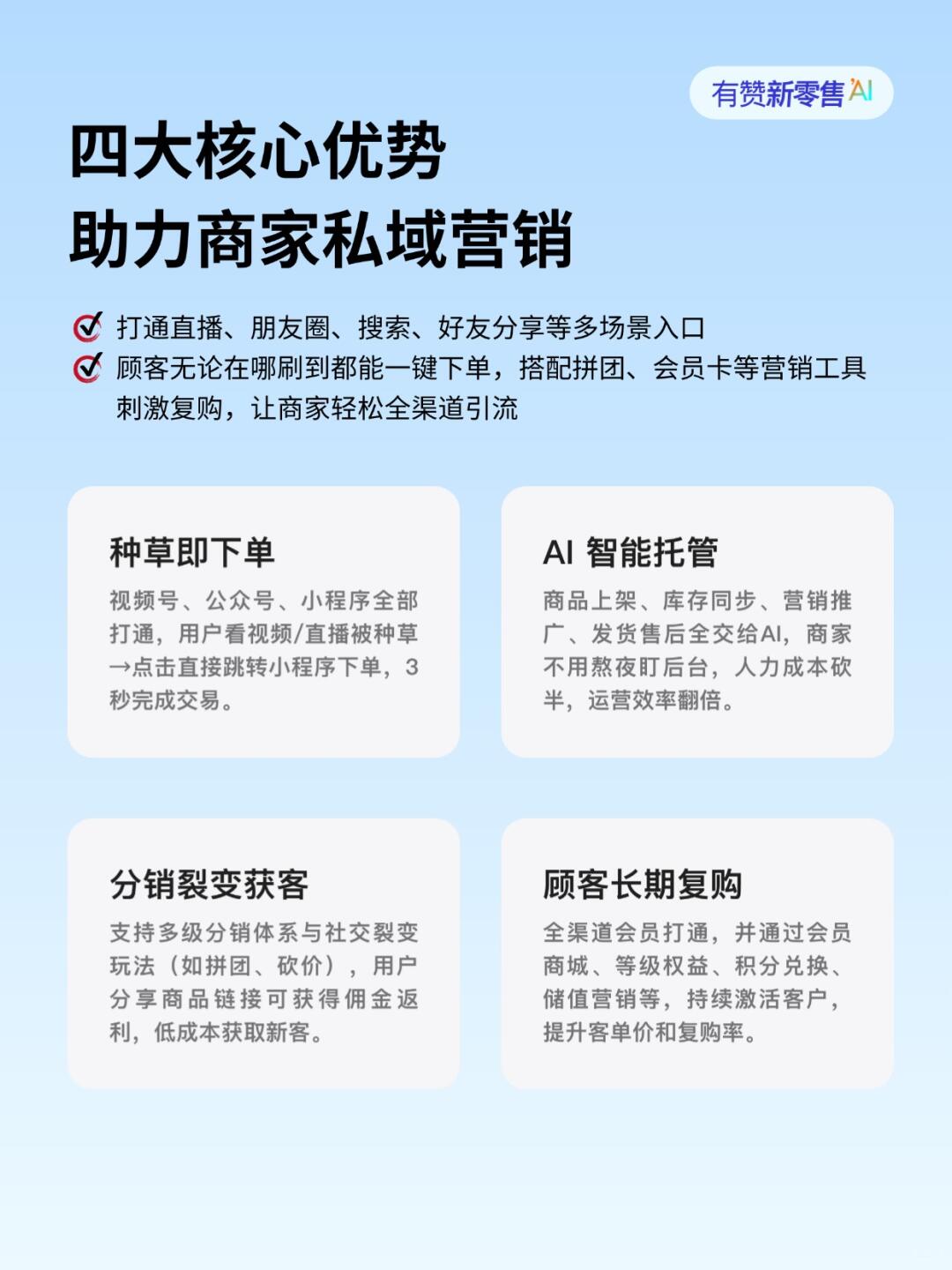 今天给大家分享一个智能化开店工具——「微信小店托管」智能体,教你如何低成本快速开店,化繁为简启动私域经营👇