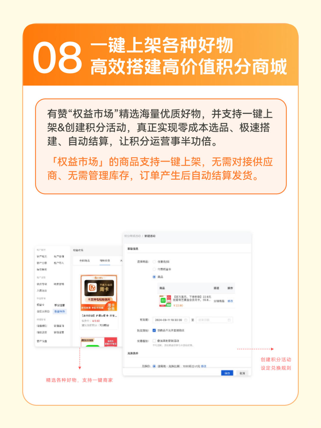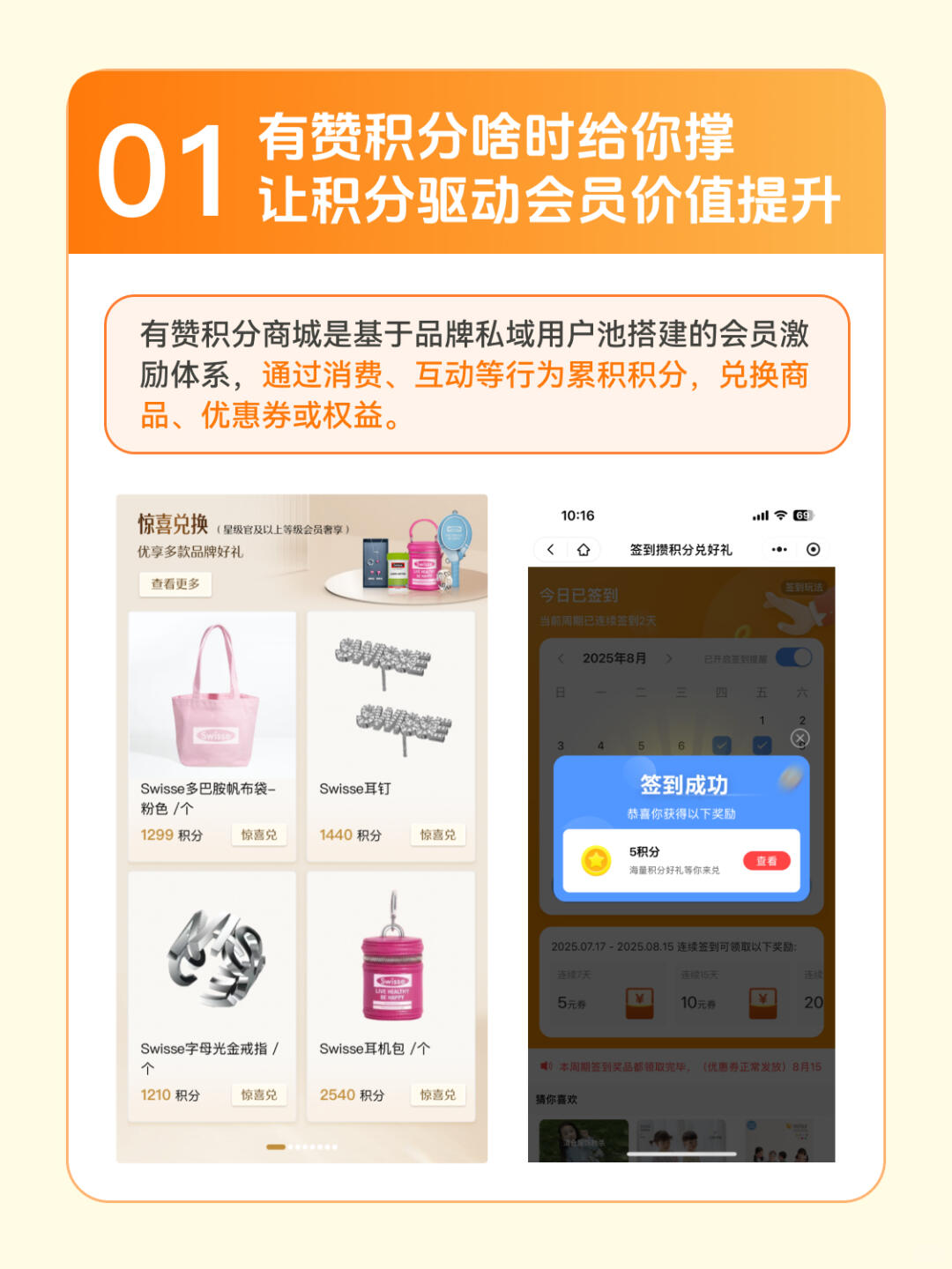👉 用户:通过消费、签到、互动赚积分 → 兑好礼/券/权益,薅羊毛超爽!