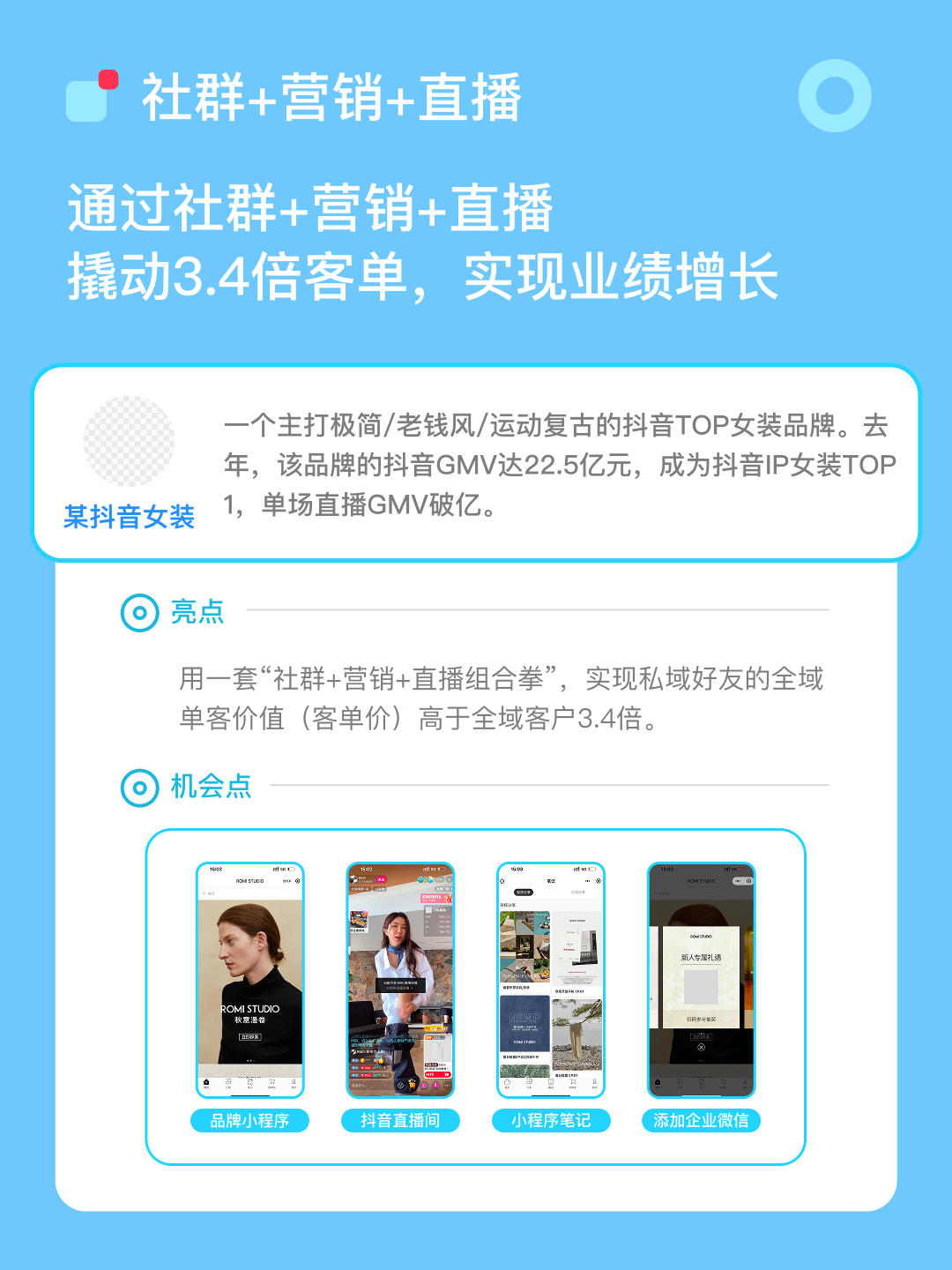 社群不是发广告的地方,而是你留住人并推动复购的主场。群里要有人气、有话题、有用户生成内容:鼓励晒图、做小调查、发搭配建议、用小活动把会员拴住。大促期间把社群当作预热池、流量放大器和返场工具:先在群里预热新品和折扣,让核心粉丝有优先购买的感觉;在爆发期把直播链接或微商城链接发出去,方便他们回到习惯的平台下单;在返场期用储值、积分或限时加码去激活还没下单的用户。别强行把交易留在微信,尊重用户习惯,链接要顺手。