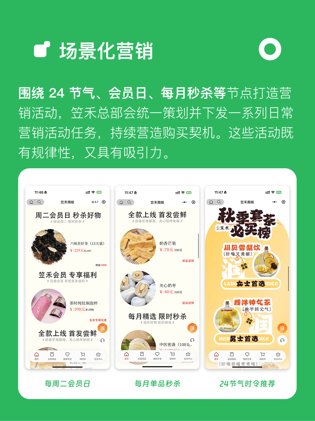 接着,他们把一年分成二十四个节点:立夏、秋分、冬至……每到节气,总部提前把当天要发的图文、优惠、问候语做成模板,一键发给所有导购。导购只用点一下,就能把“冬至进补提醒”发到对应顾客的微信里,配图、配券、配话术,全是现成的。