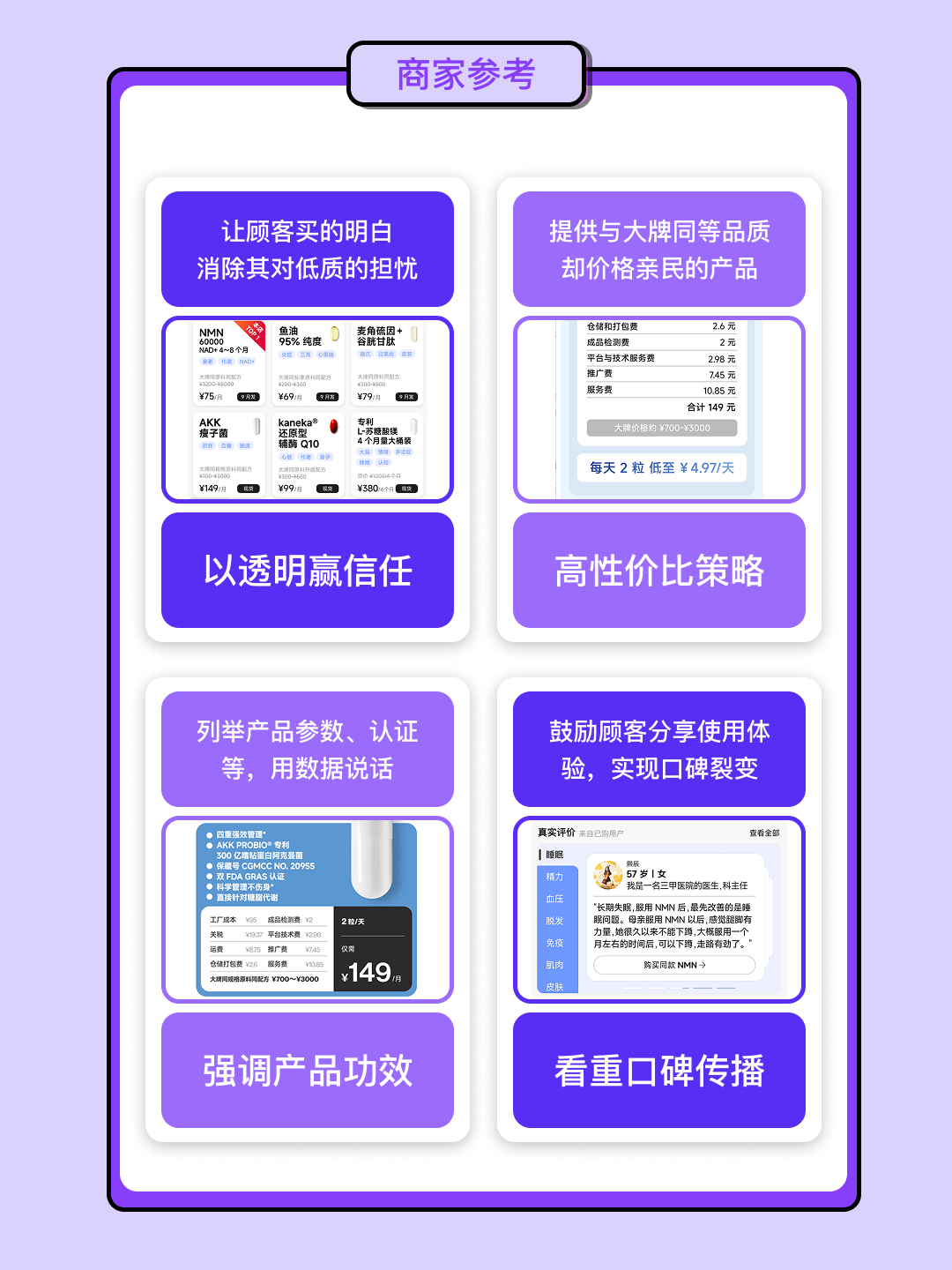 接下来是第二招,提供与大牌同等品质却价格亲民的产品。咱都知道,消费者买东西最纠结的就是“贵不贵”“值不值”。你要是能像那个聪明的商家一样,把产品参数、认证这些都清清楚楚列出来,用数据说话,让消费者看到“这就是性价比”,那生意还不滚滚而来?而且别忘了,我们还要强调产品的功效,毕竟消费者买东西是为了解决问题,不是为了收藏一堆没用的摆设。