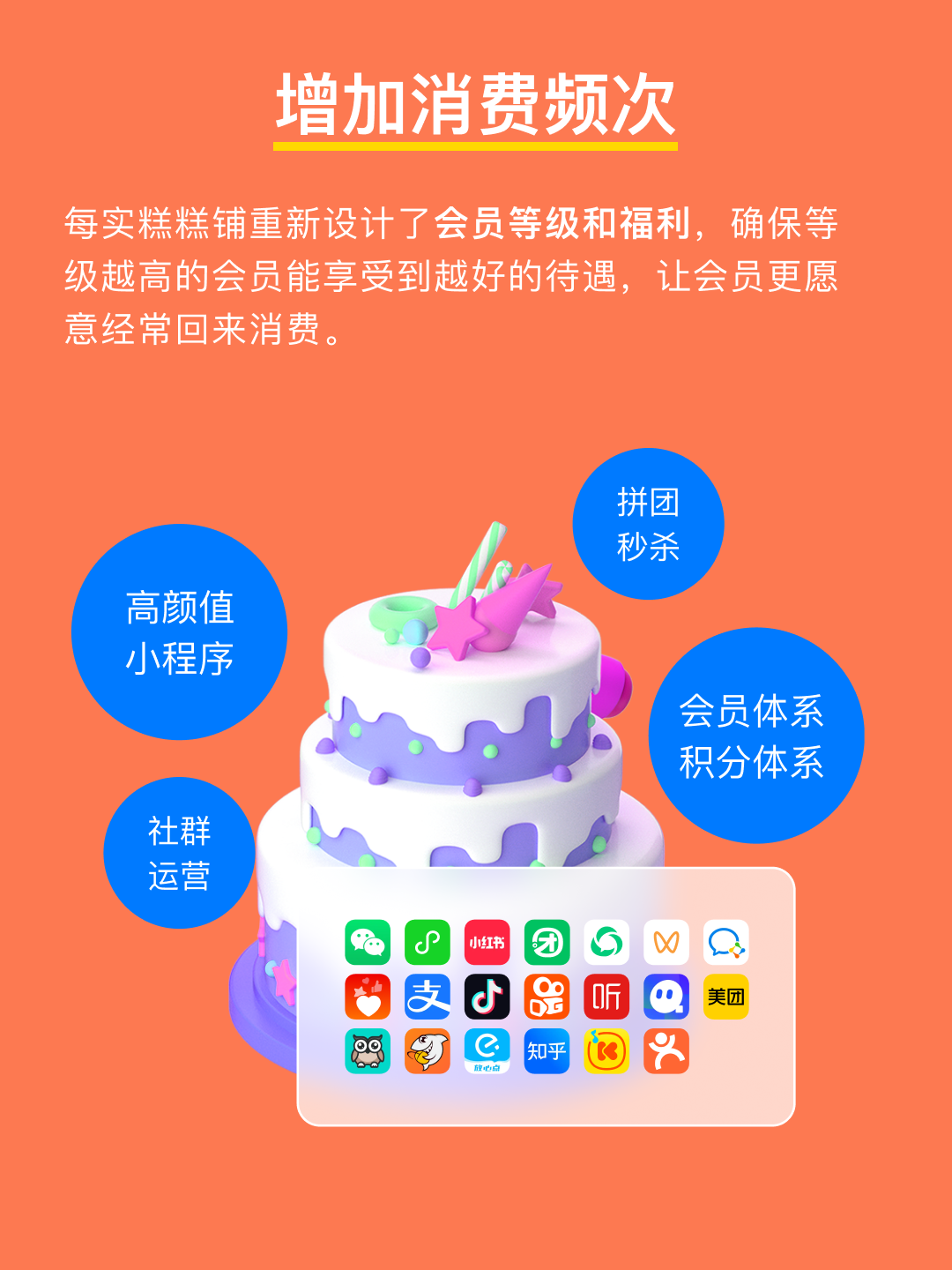 为了增加消费频次,每实糕糕铺重新设计了会员等级和福利体系。他们摒弃了传统的 VIP1 至 VIP5 分级方式,改为更具亲和力和吸引力的粉丝卡、家园卡、家宾卡、家人卡、家族卡。每个等级的会员都能享受到更为丰富的权益,从原先的两张优惠券增加到四张,涵盖了折扣券、兑换券等多种形式。这样一来,会员升级的动力显著增强,他们更愿意频繁光顾店铺,以享受更高层级的会员福利。此外,每实糕糕铺还积极引导会员使用小程序商城,会员登录后即可获得 88 折优惠券,这种即时的优惠激励,让会员逐渐养成了在小程序上下单的习惯,进一步提升了消费频次。
