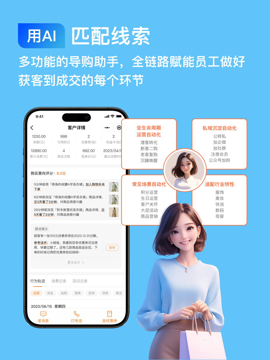 它记得哪位顾客常买什么、喜欢什么价位、容易在哪个环节流失,然后在你需要做动作的时候,及时给你信号。
