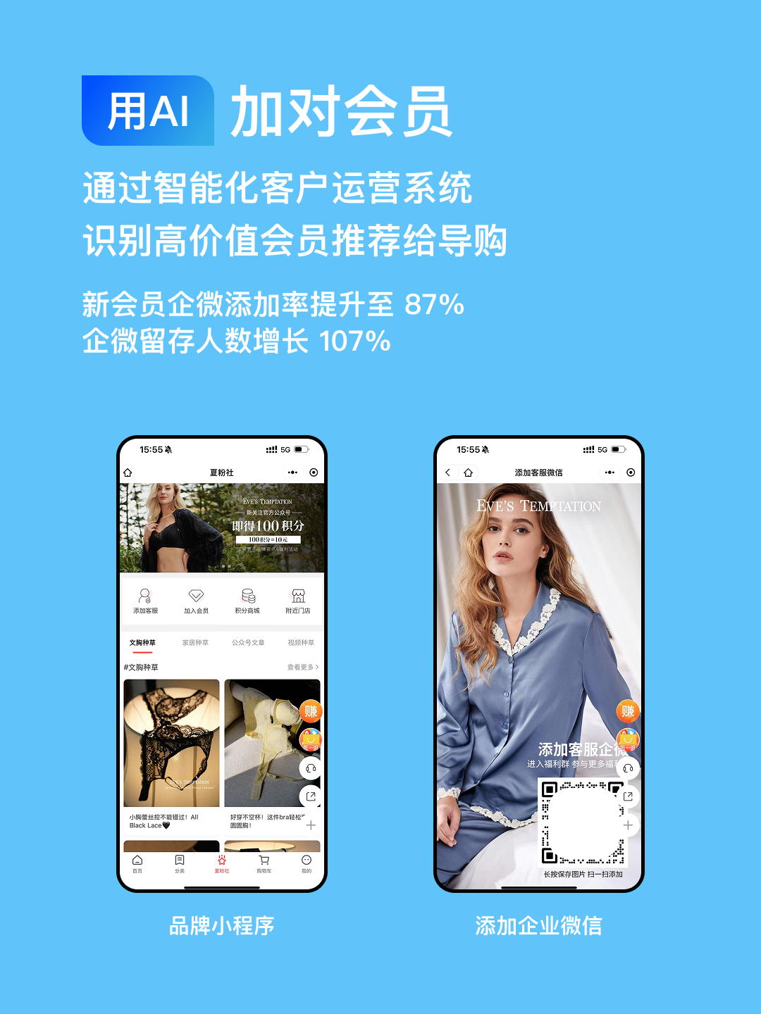 就这么一个动作,门店的入会率从以前靠人工引导的百分之三四十,直接拉到了87%,企业微信的顾客留存人数翻了一倍多。