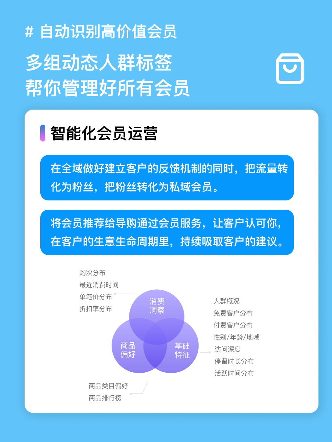 我们再往深处看。AI还能帮你识别出哪些会员是高潜力客户。比如系统会自动给会员打标签:购买频率、客单价、商品偏好、最近是否沉睡……然后自动把这些高价值用户推荐给对应的导购。
