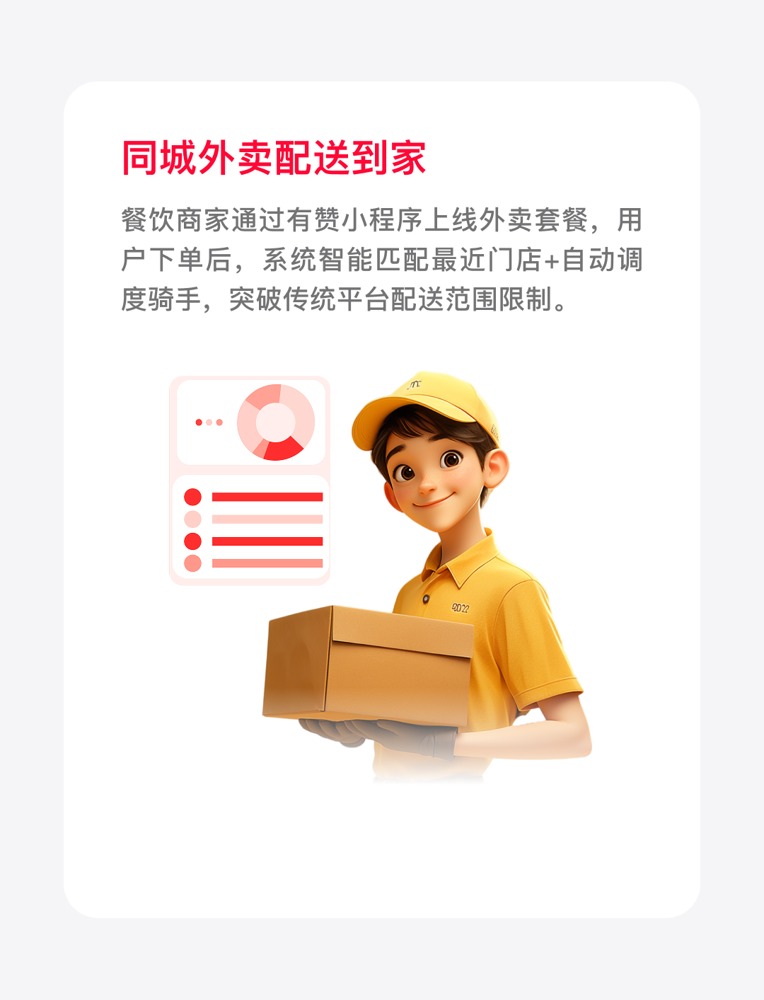 有赞同城外卖自己发单,对接顺丰同城、达达、闪送,平台只收0.6%技术服务费,25块客单价省4块,一个月省出一部iPhone。