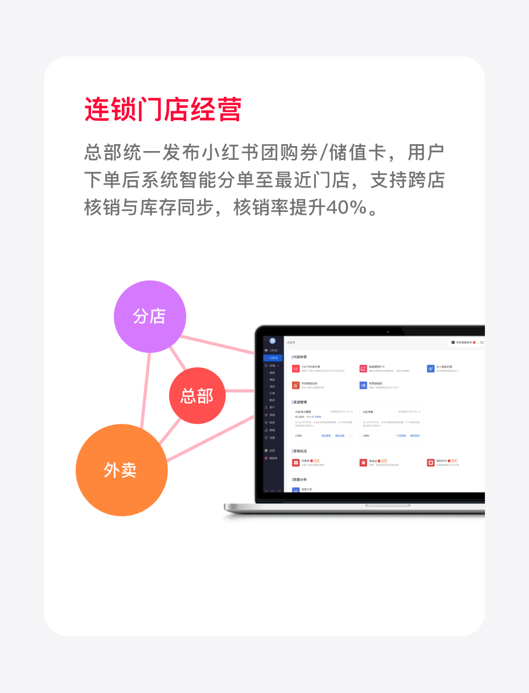 总部统一上架团购券、储值卡,系统按手机号就近派单,哪家店库存足就去哪家。