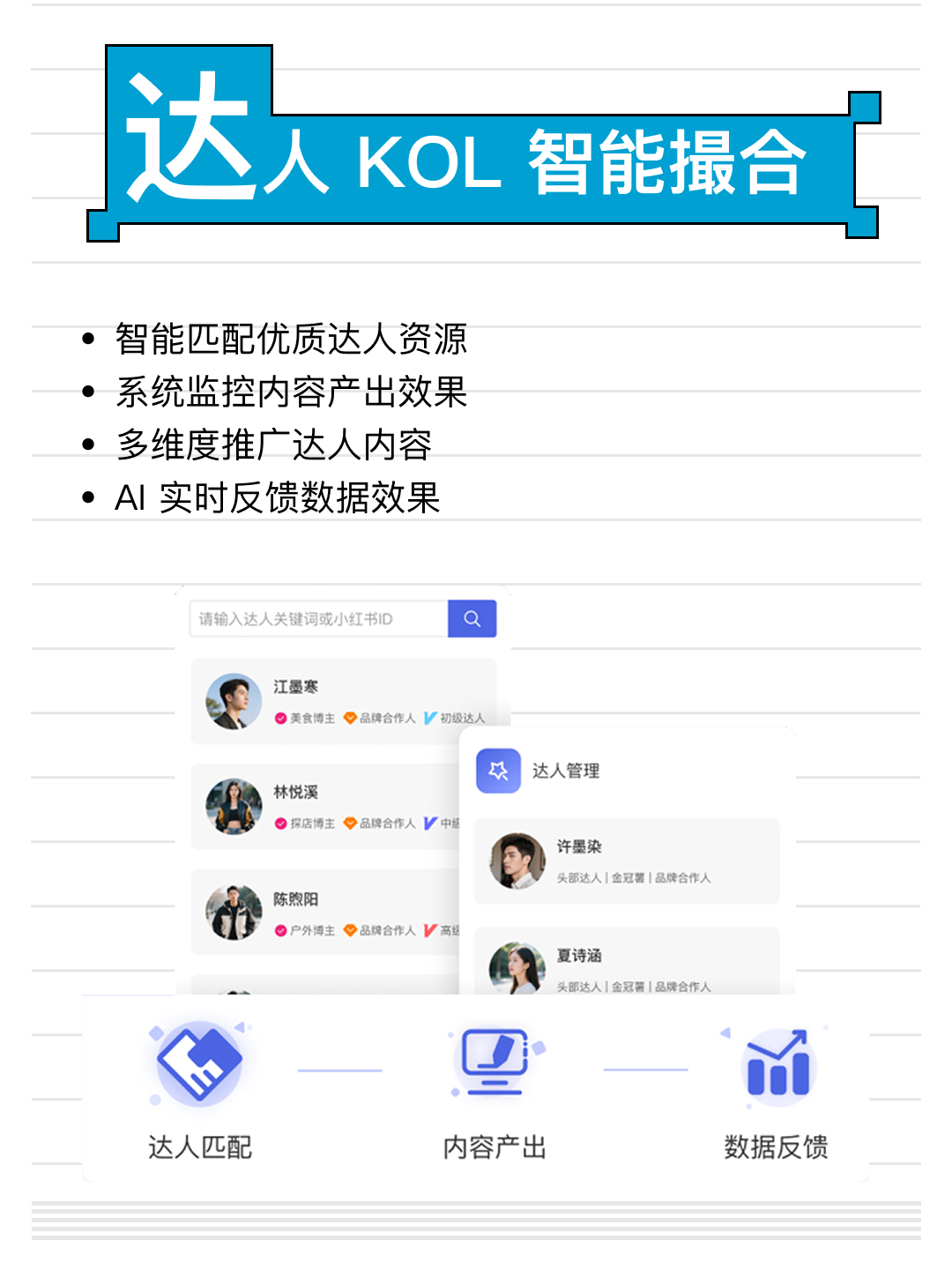 后台有本地达人库,输入“甜品”“生日蛋糕”,自动跳出最近30天带“天津探店”话题且赞藏比大于10%的账号。
