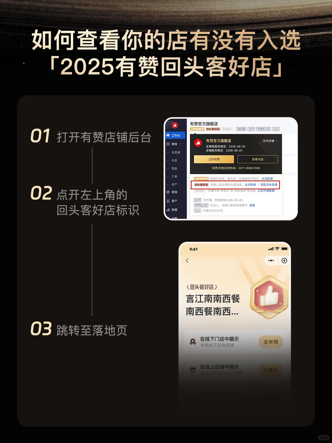 1️⃣ 晒荣誉:拍摄你的专属「回头客好店」勋章或电子海报。