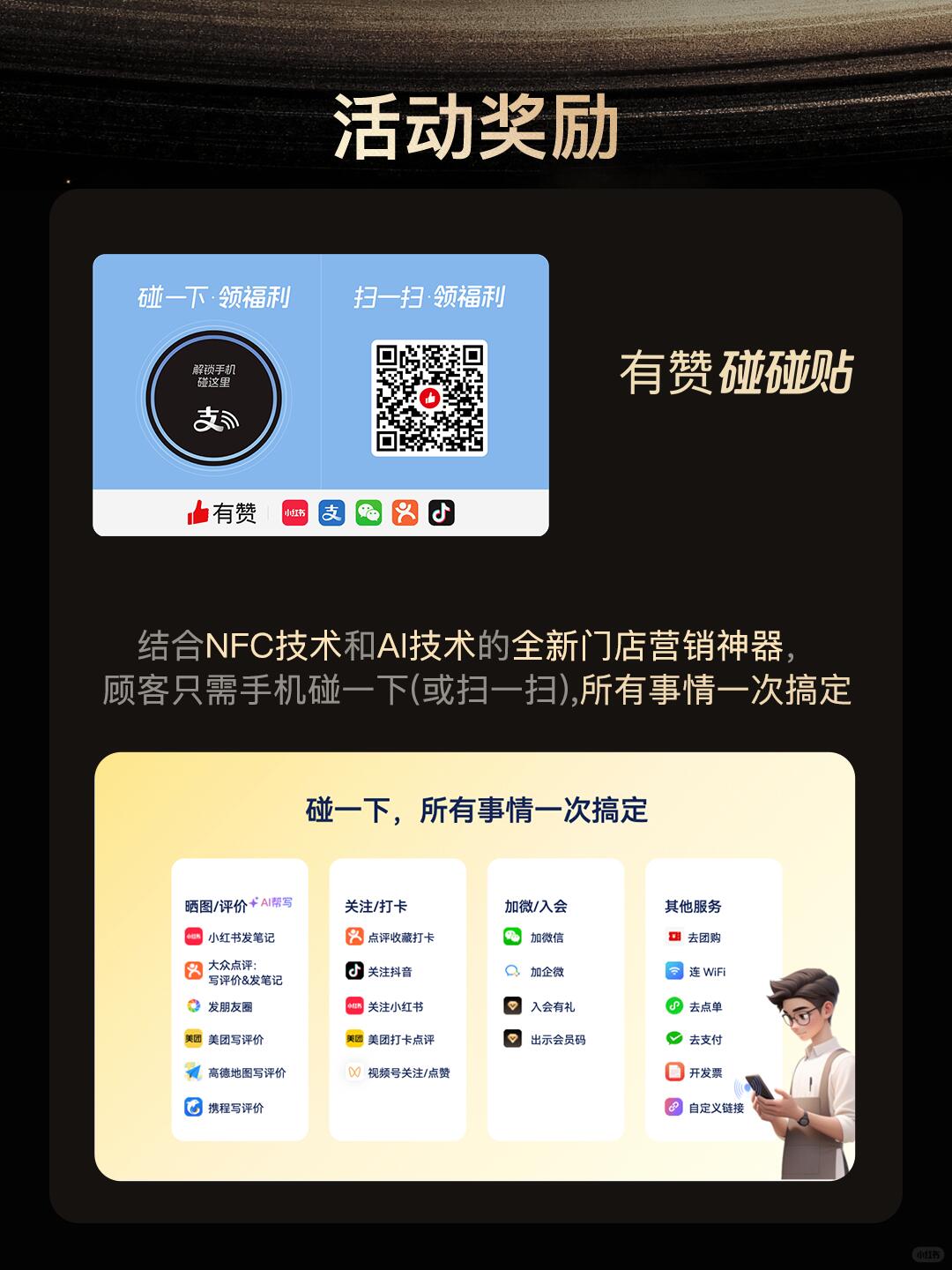 完成以上三步,即可免[钱袋R]获得智能营销神器——「有赞碰碰贴」一份! 助你轻松玩转线下引流,锁定回头客!