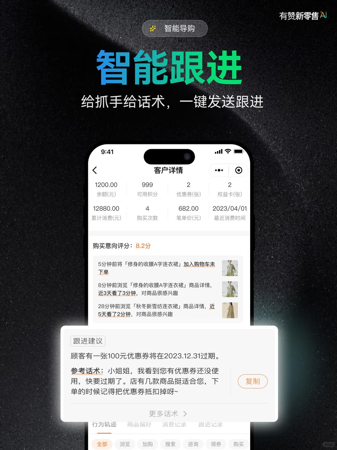 AI帮导购在客户线上沟通的每一环,提供金牌导购般的建议!
