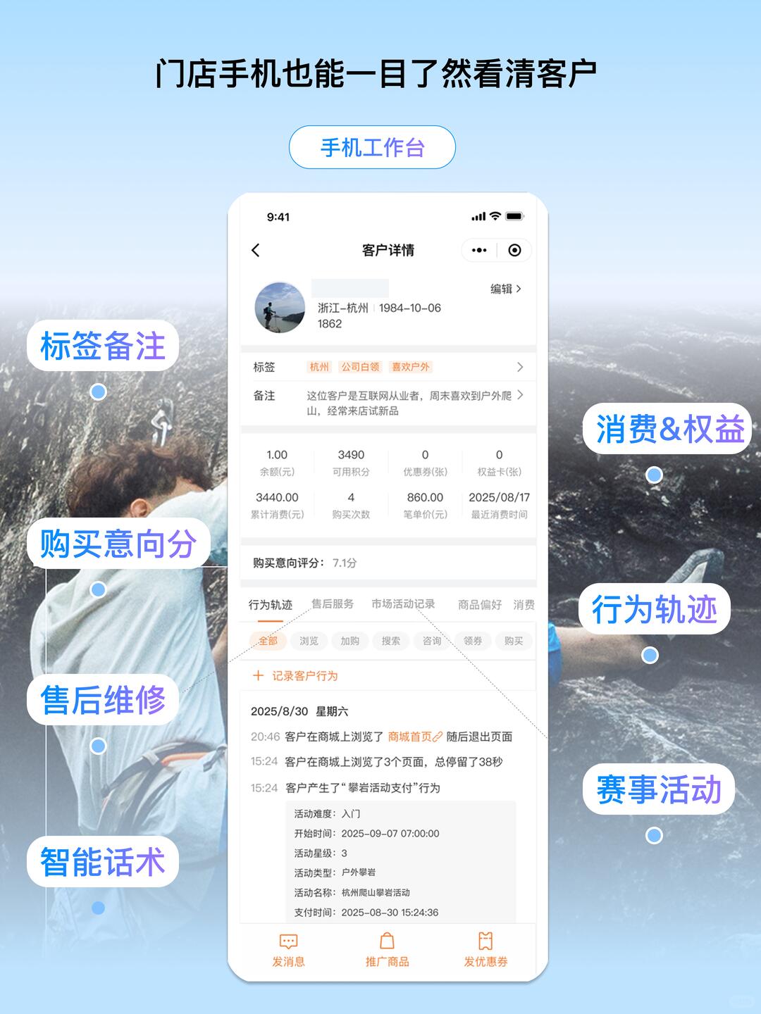 以前就知道客户买了啥,现在?他爱登山还是露营、多久保养一次装备、参加过啥活动…