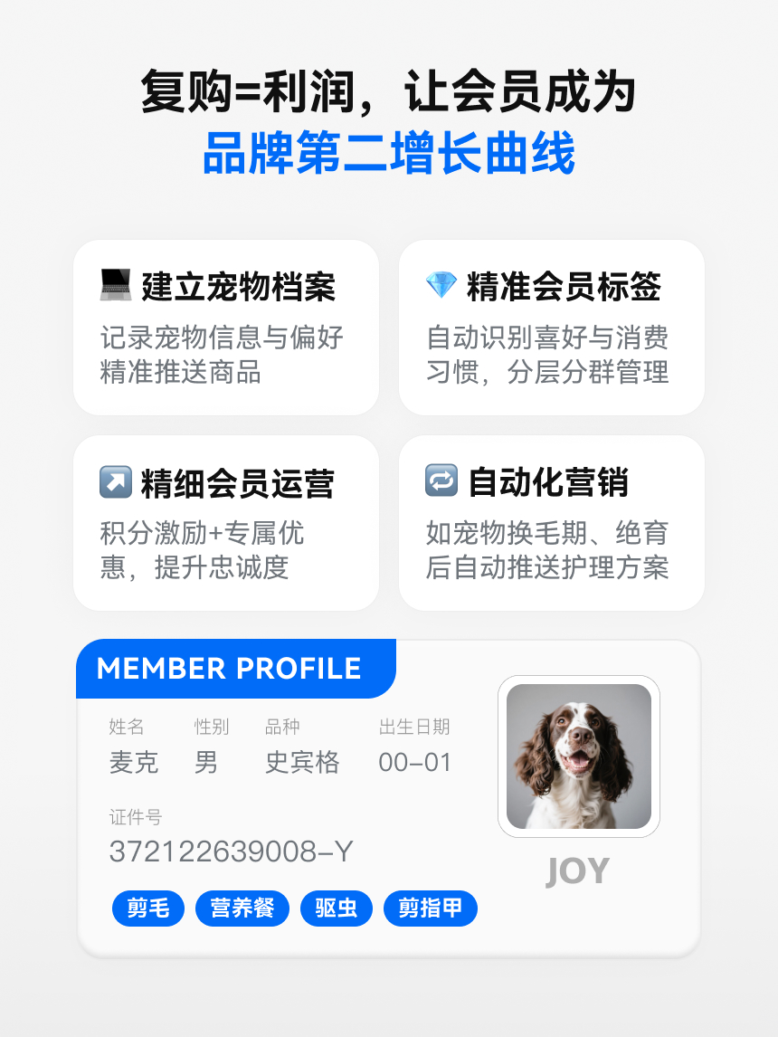 ✔️ 全渠道会员权益统一 宠物赛道不缺机会,缺的是“精准打法”! 有赞提供从趋势洞察→策略落地→私域深耕的全链路方案,助力品牌实现可持续增长!