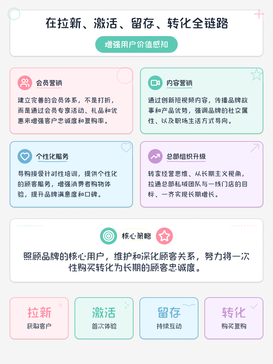 2️⃣ 导购服务个性化:总部给导购培训,让他们能基于会员标签提供差异化服务。记住,会员买的不是折扣,是专属感组织思维长期化:取消门店短期业绩考核,把会员留存率、复购率纳入核心KPI。付费会员是资产,不是促销工具