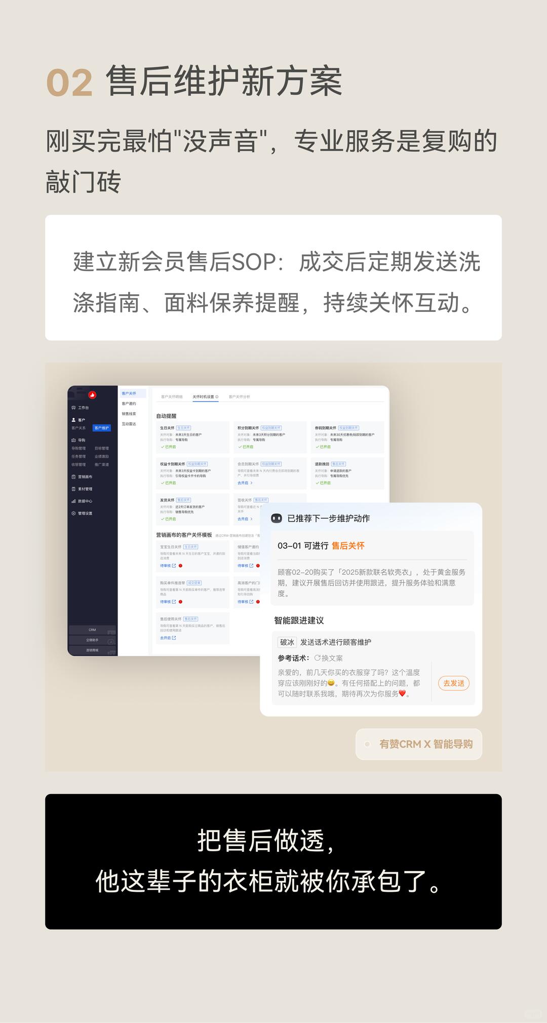 💡 方案: 建立售后SOP。定期发保养提醒,让他产生依赖感。
