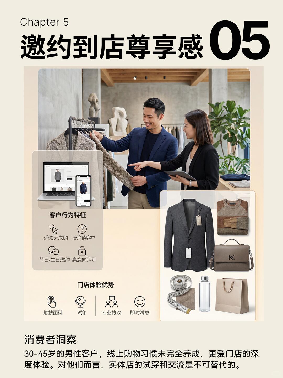 💡 方案: 店长发起特权邀约,预留试衣间和私密品鉴,拉满仪式感。