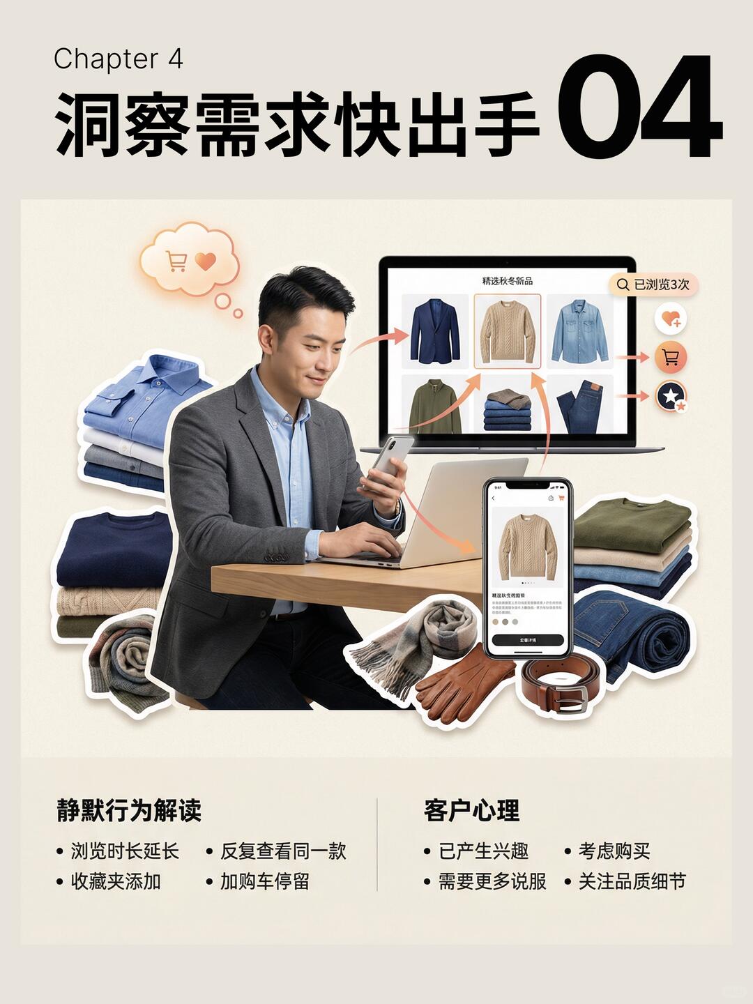 📍 洞察: 男性更爱“静默浏览”,反复看某件单品就是明确信号。