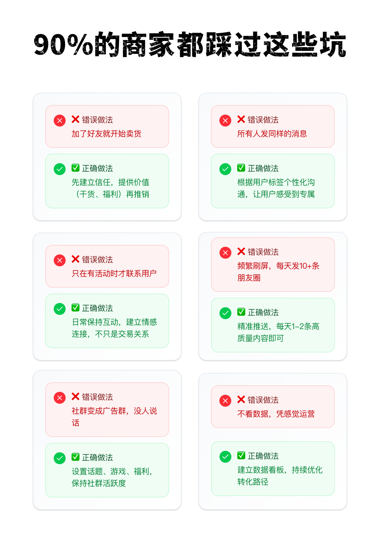 1️⃣ 刚加好友就卖货,正确做法是先提供试吃或干货建立信任;