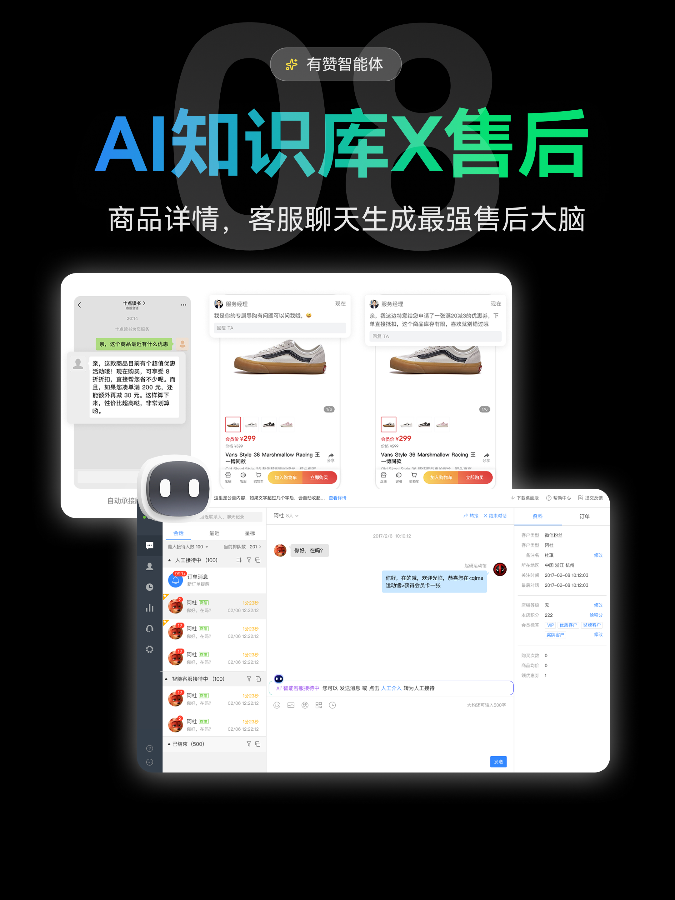 AI学习商详和对话,客户加微后侧边栏高效出答案,24小时在线超级客服,售后无忧。