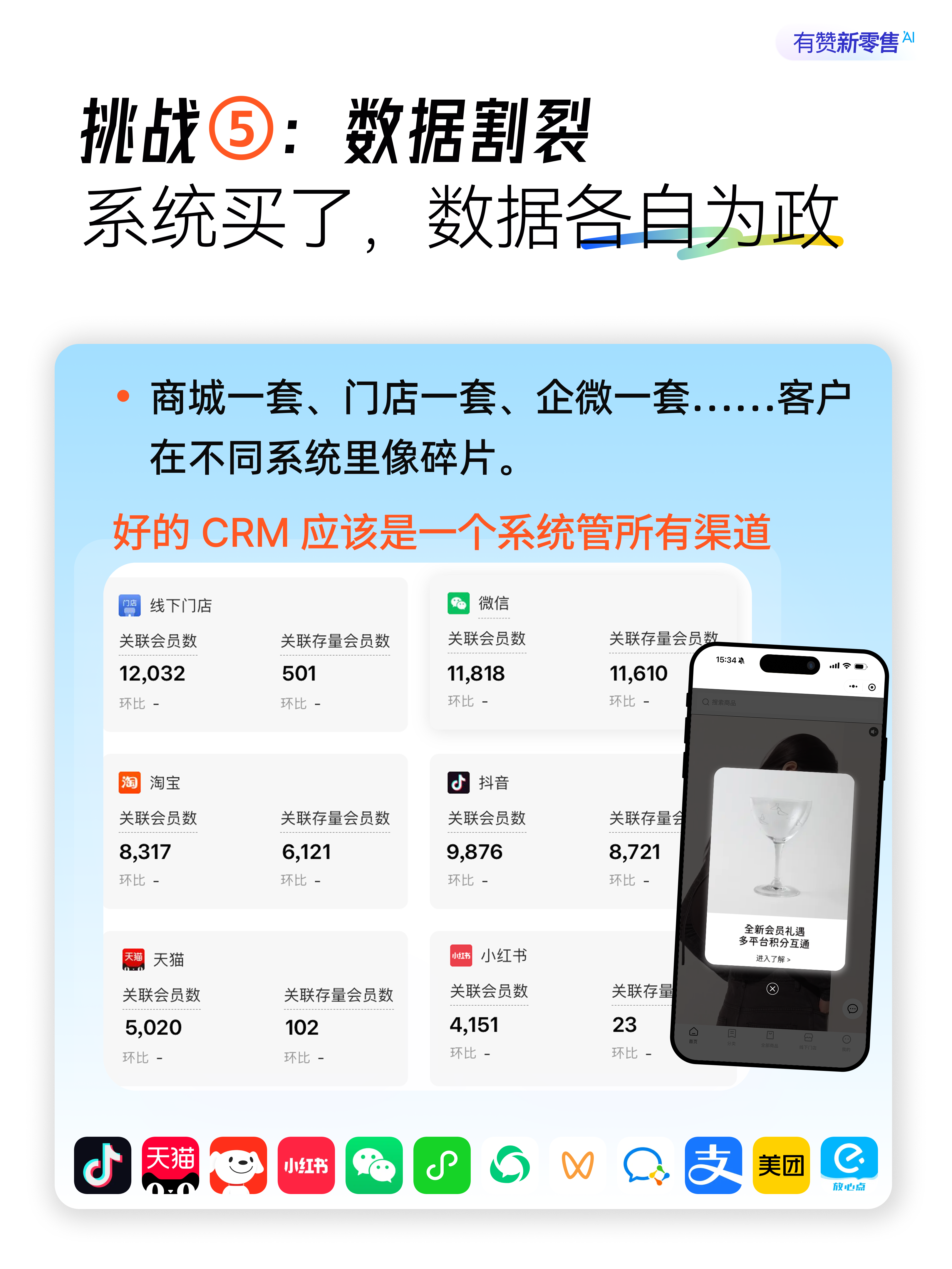 抖音来客、美团、淘宝会员……各平台数据分散,根本不知道客户从哪来。