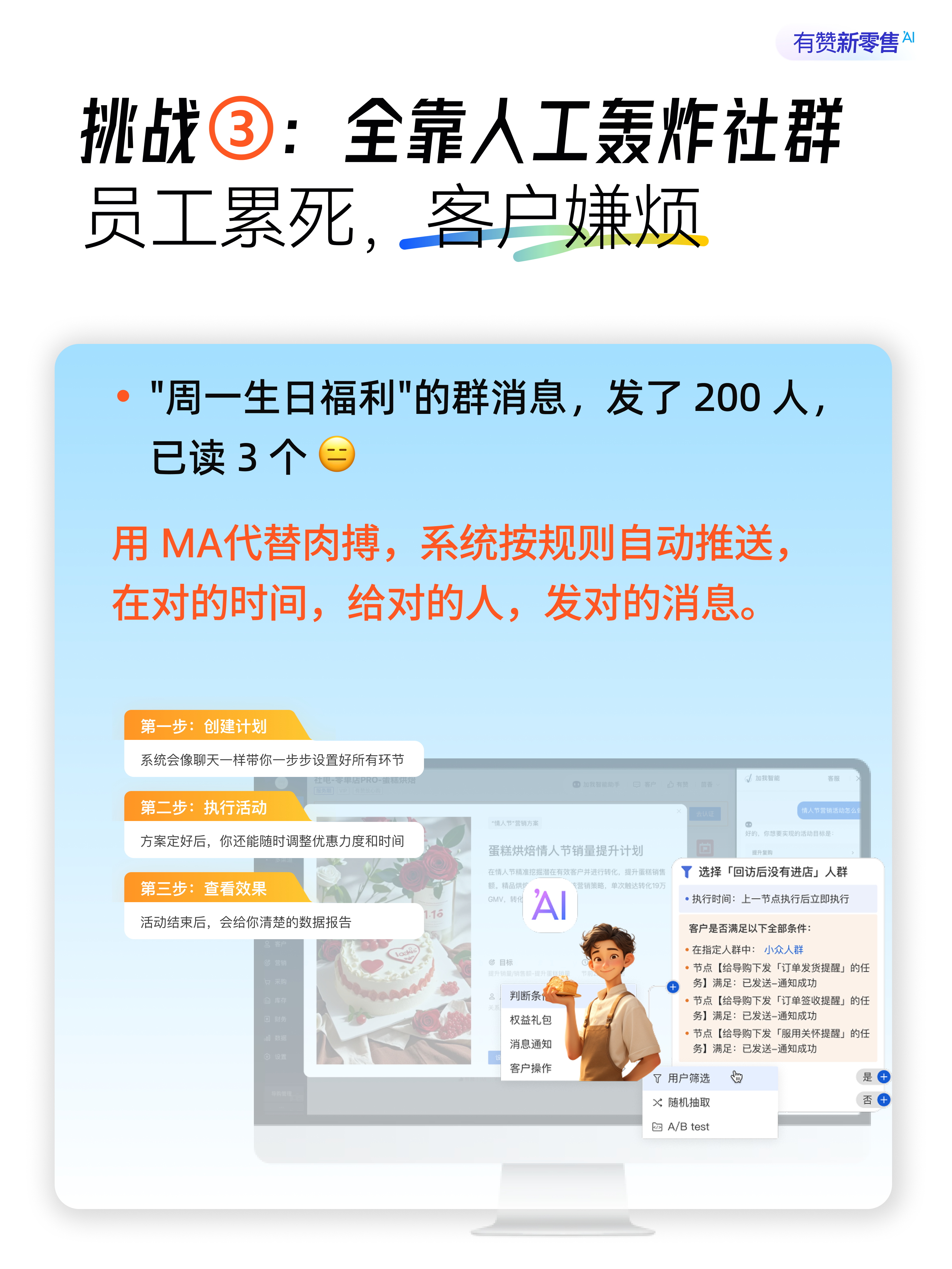 🕳坑 3:全靠人工“轰炸”社群,员工累死,客户嫌烦