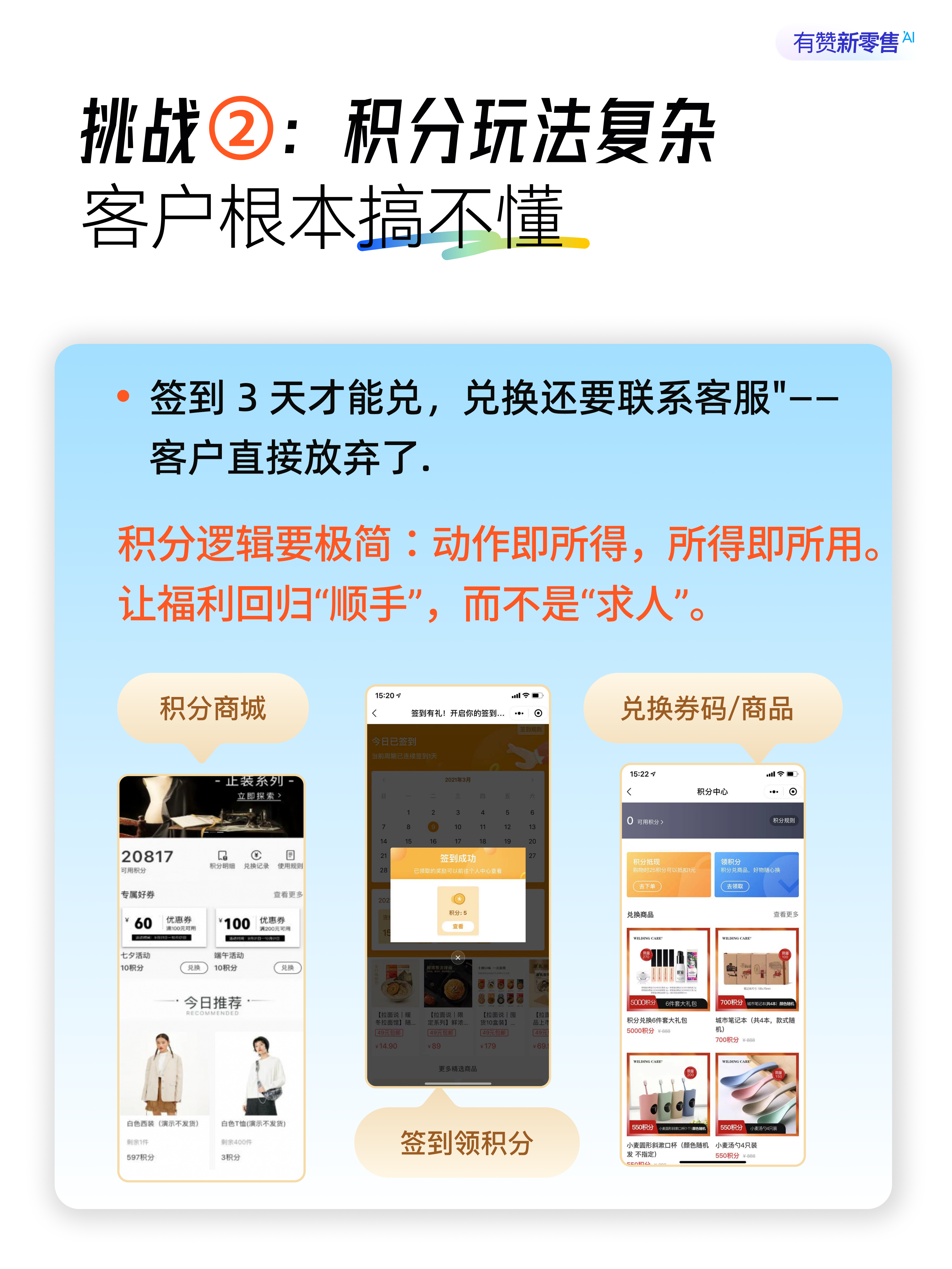 "签到 3 天才能兑,兑换还要联系客服"——客户直接放弃了。