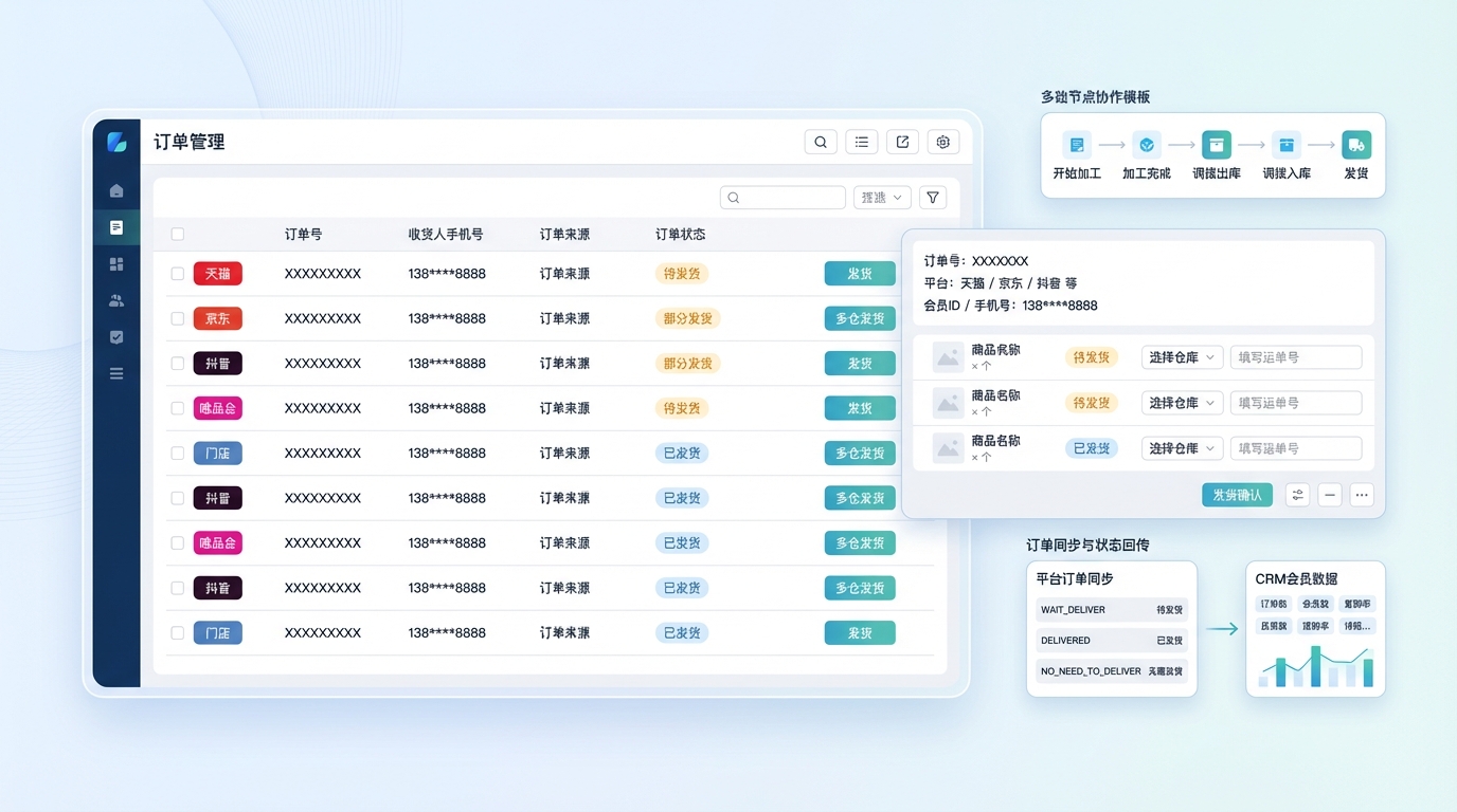 「商品订单管理-多渠道订单发货处理」通过统一接入多平台订单、自动化发货与订单会员数据沉淀,帮助中大型品牌及连锁零售商高效处理多渠道订单与多仓发货,降低人工出错率并提升跨渠道运营和复购效率。