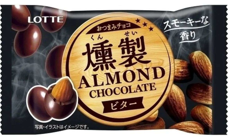 在日本,厚重浓郁的烟熏风味已经发展成为“大人の味“的重要角色。比如乐天推出的一款以熏制扁桃仁为风味特点的巧克力。使用烟熏苦巧克力包裹山核桃木熏制的扁桃仁,从内至外充满烟熏风味。配方中还加入了盐,少许的咸味带来更复杂、更偏成人化的味觉感受。这样一款风格迥异的巧克力,让人们在夜晚度过轻松的奢华时光,沉浸在扁桃仁质地和烟熏味的余韵中,恢复心情并缓解白天的疲劳。