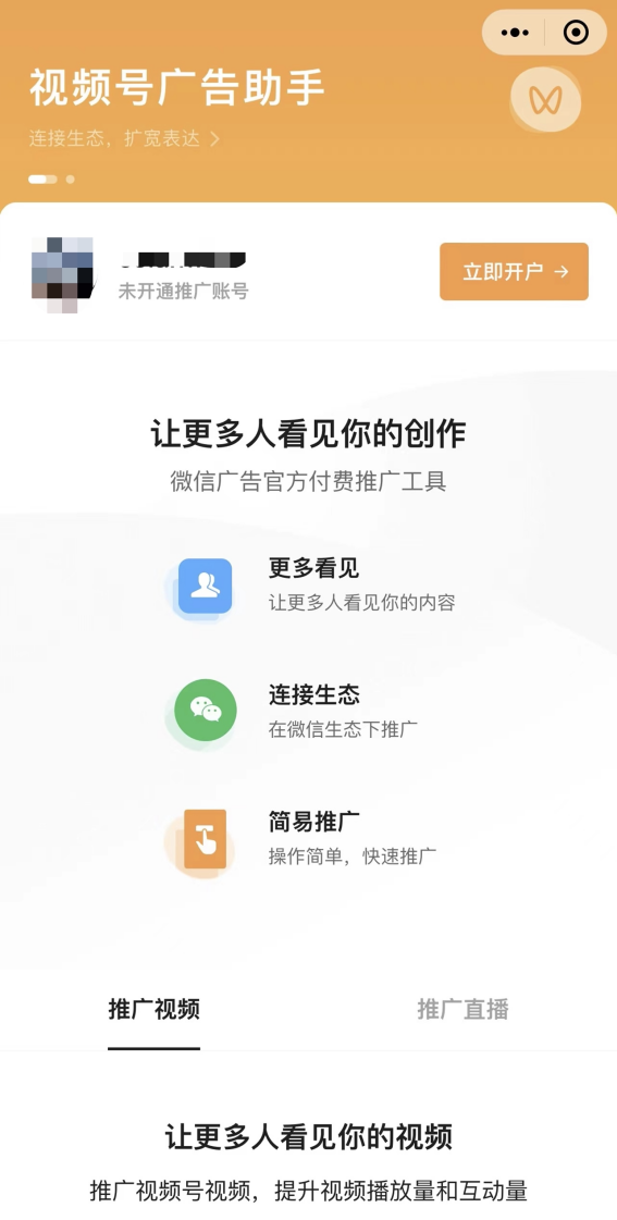从今年2月26日开始,视频号就全面开通了付费推广功能,不论是个人还是企业都可以通过开通这个功能推广你的视频号。