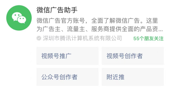 除了“视频号推广助手”之外,还可以利用微信广告助手进行视频号推广,如下图所示: