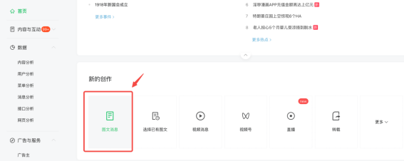 这一步是常规操作,登录微信公众号平台(https://mp.weixin.qq.com/)之后,开始图文编辑;