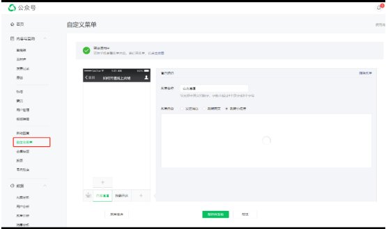 3.点击“自定义菜单”,进入自定义菜单编辑界面;