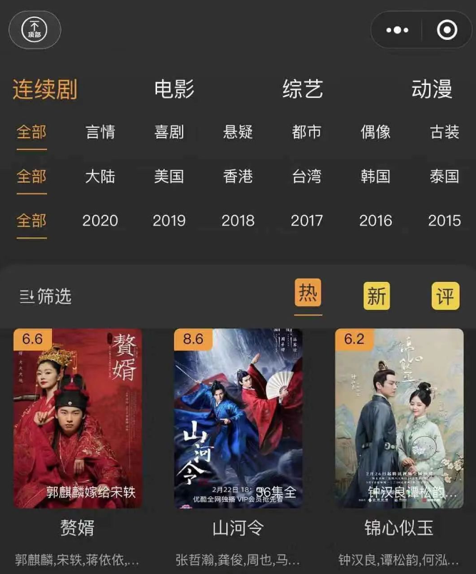 VIP会员电影免费观看的微信小程序,里边超多热门电影电视剧,各种动漫综艺直播,都有, 日剧,港剧,美剧,爱情片,科幻片,恐怖片等等,有你想看!无广告,轻量化,更流通。一款更新比较比较及时的微信小程序,基本上每天都会更新,刚刚出来的电影电视剧,都能 在该软件上找到。不管是免费的影视,和其他视频网站需要付费观看的电影,都能一 键免费观看,无需花费一分钱!该小程序还内置在线云播、在线下载、投屏等给力功用。