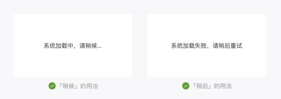 后,表示后面,稍后本身是一个副词,一般后面会跟着其他的词语,如“系统加载失败,请稍后重试”,意思是系统出现了数据加载失败,需要你等一下再重新操作一下,一般界面中会出现“刷新”这样的动词操作。