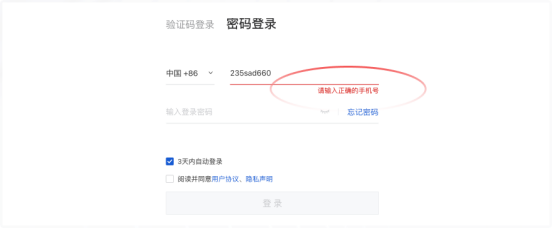 遇到错误时,最好是及时的告知用户同时可以让用户改正当前的错误,提升产品的体验。 比如登录的时候,不能让用户填完手机号并提交之后,才发现哪里填错了。应该在输入之后进行实时验证,清晰标明错误原因,用户不必等到点击提交按钮才看到错误,可以更早进行调整改正错误。