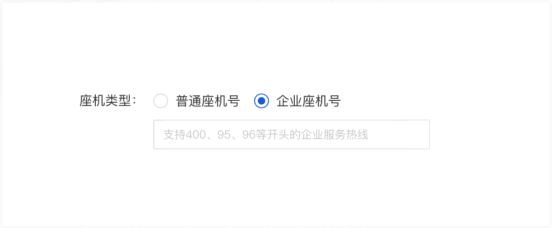 以企业座机号录入为例,企业座机号号码种类多样,提前将符合规则的常用座机号类型在暗提示里标明,可减少用户不必要的错误。