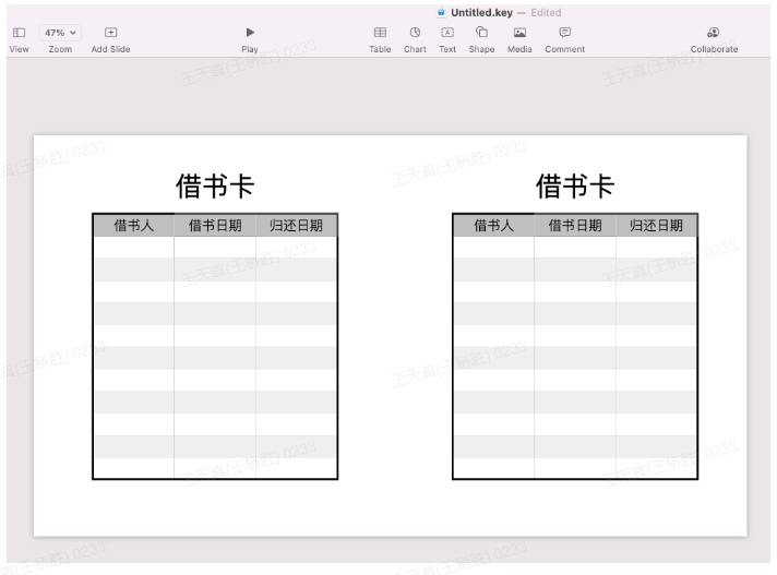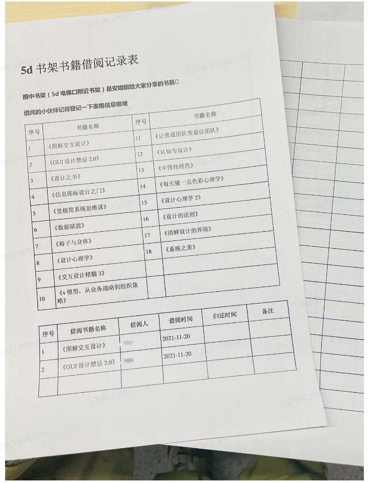 看来还是要有一个书籍的借还记录,我于是找了借书最多的一个小伙伴,请她帮忙做一下借书卡。