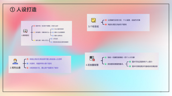 昵称、签名 简单直接、核心关键词、个人特色 ——误区:人云亦云、过于普遍、花里胡哨