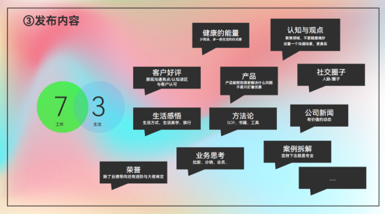 朋友圈发文频率、发文方式、互动节奏 适度、自然 ——误区:频繁 |