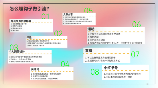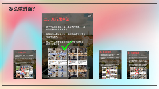 好内容的关键: • 具有网感吸引力的标题 • 突出重点、体现审美的封面 • 话题方向及关键词设置 |