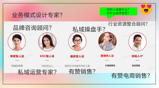 关键问题2:你要树立什么人设?你是谁? • 客户顾问? • 私域运营专家? • 品牌顾问? |