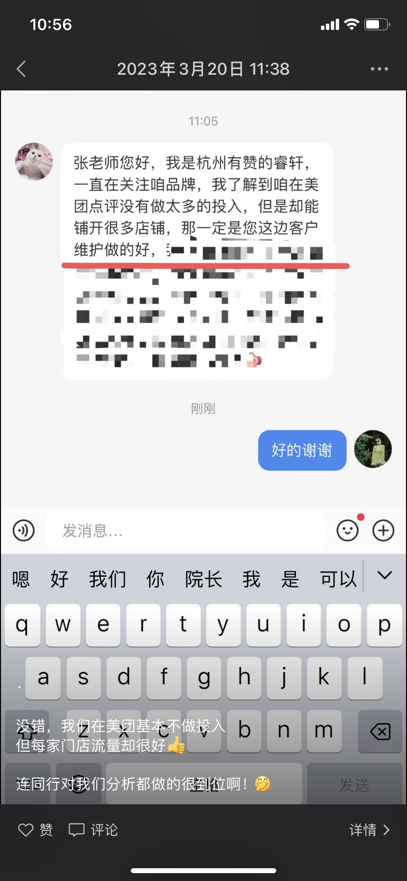 通过以上方法找到连锁品牌后,再通过美团、点评、抖音找到该品牌初步了解该品牌的情况,包括:品相、装修、团单数、评论等,再制做相应的话术!(个性化内容才能更好打动客户)