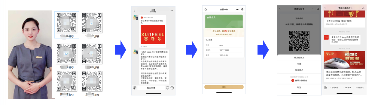 为了解决这些问题,赛菲尔珠宝采用了“多码合一”技术,通过一次扫码即可快速实现多触点沉淀: